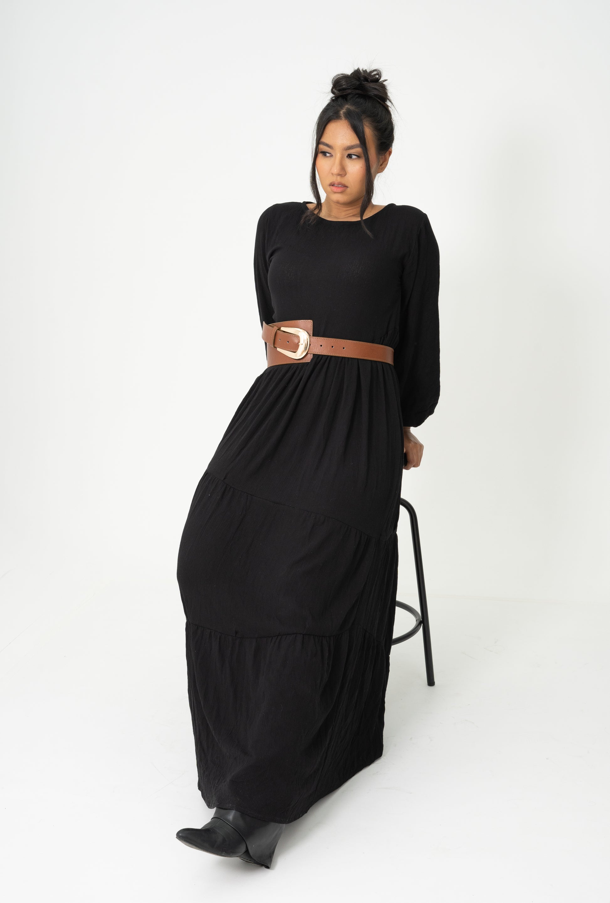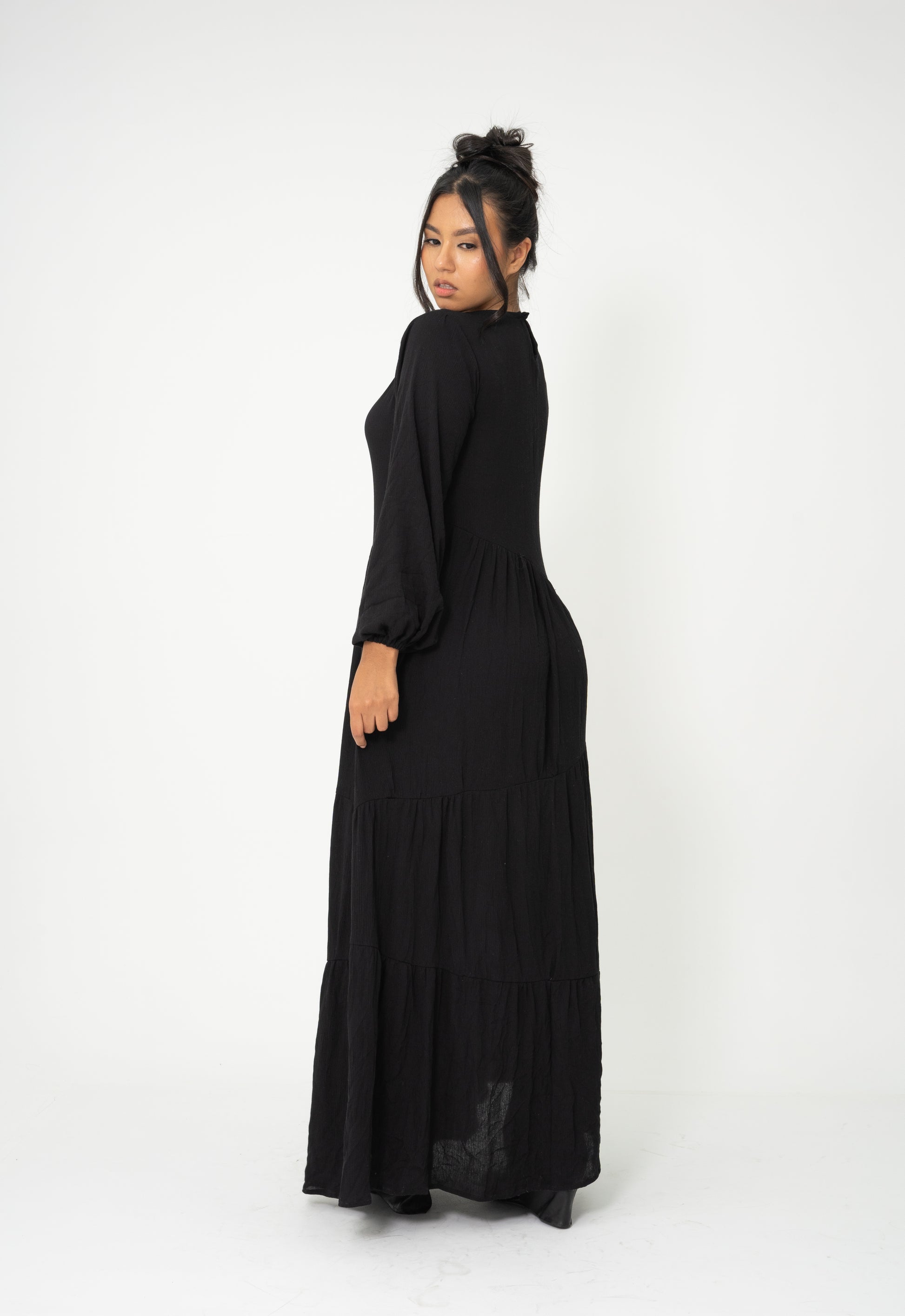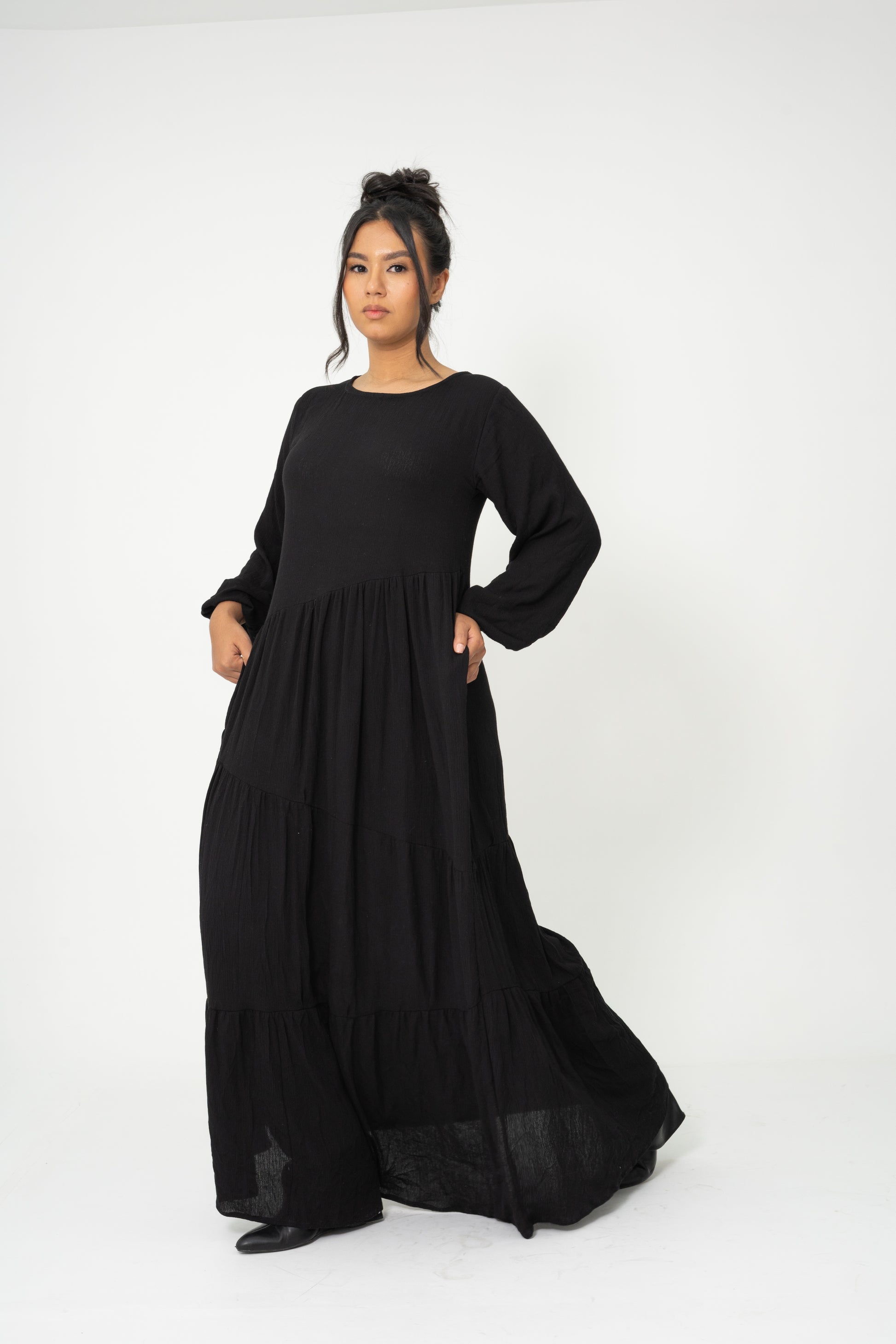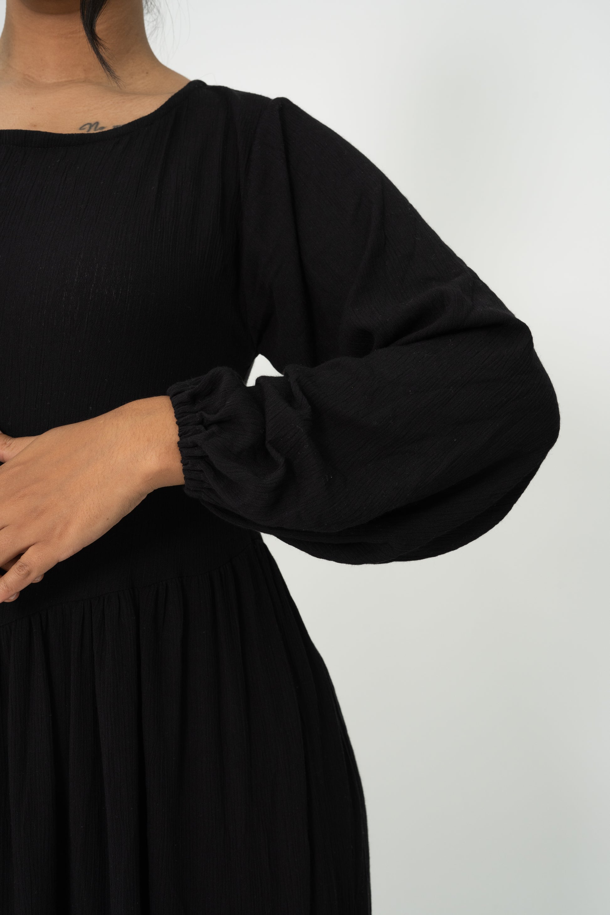 Negro, asimétrico y con carácter. Este vestido se define por sus cortes inesperados que rompen la simetría tradicional, creando una silueta única y moderna. Es perfecto para quienes no temen destacar. No incluye accesorio.