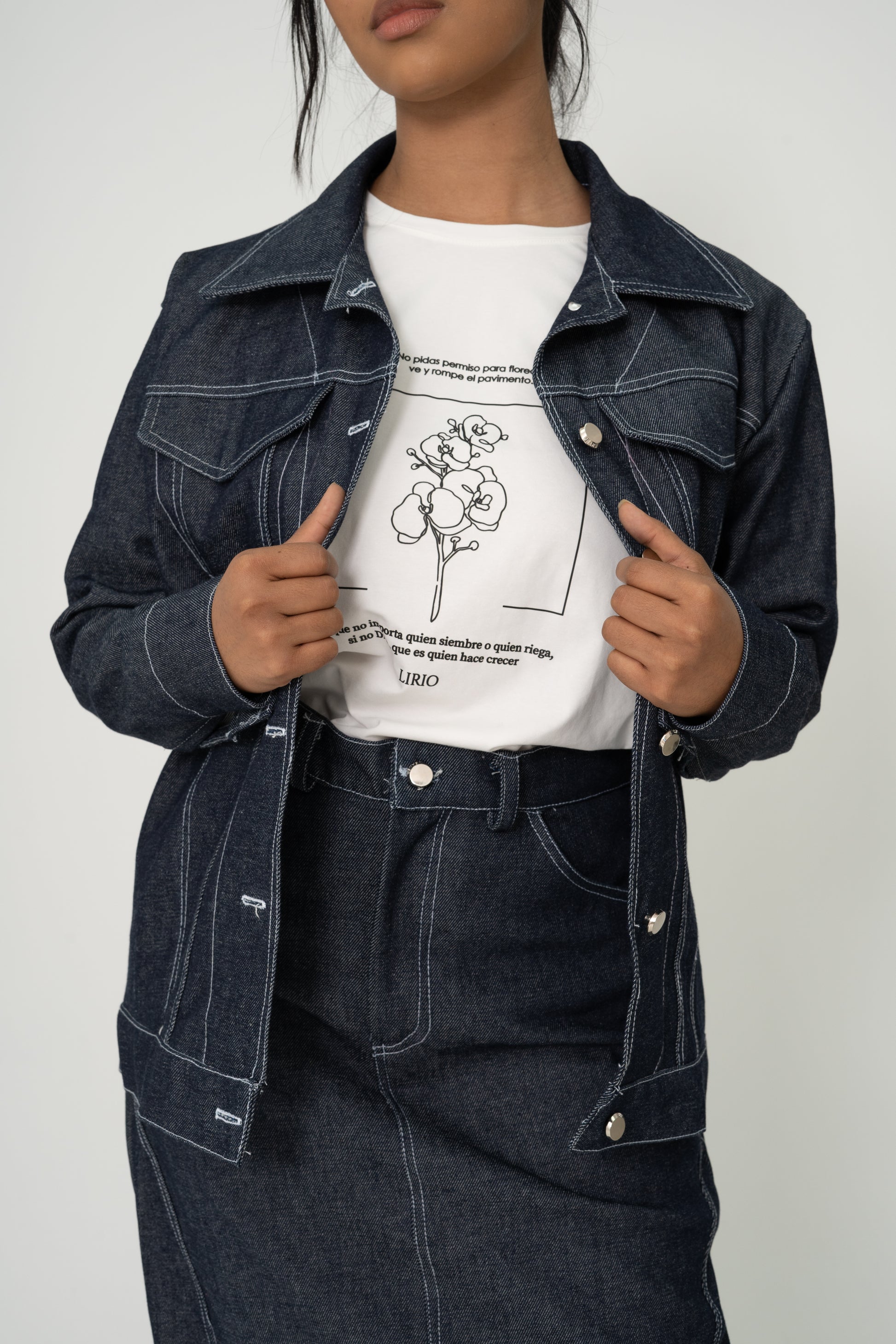 T-shirt en lycra fría con diseño en manga tipo guardapolvo, mensaje inspirado en la fuerza que rompe el pavimento. Incluye la cita: